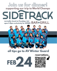Join us in supporting the Amador Valley Winter Guard. 100% of the tips go to the Winter Guard team.