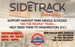 Join us at SideTrack, mention the Harvest Park “We the People” Fundraiser from 5pm to 8pm and SideTrack will donate a portion of the proceeds from your purchase.