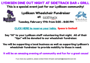 Link: Lydiksen Elementary School: Lydiksen Dine Out Night at SideTrack Bar + Grill for our Wheelchair Foundation Fundraiser